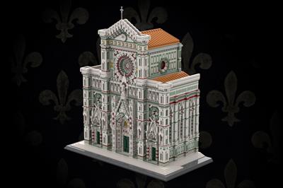 This model not only includes the majestic front facade of Santa Maria del Fiore (Florence Cathedral), but also a section of the nave, offering a deeper architectural experience and greater display impact.